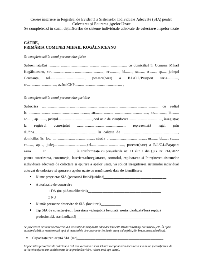 How to fill nscriere n Registrul de Eviden a Sistemelor Individuale ... word template