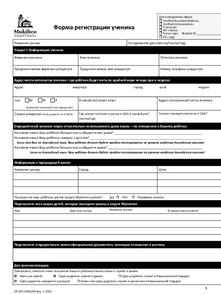 Verified Boundary/Address Verified Immunizations Transcript IEP release Nurse copy Student ID: ESL copy (//) 1