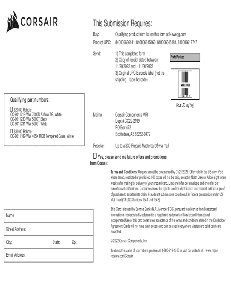 This Submission Requires: Buy: Product UPC:Qualifying product from list on this form at Newegg.com 840006636441, 840006645160, 840006645184, 840006617747Send:1) This completed form 2) Copy of receipt