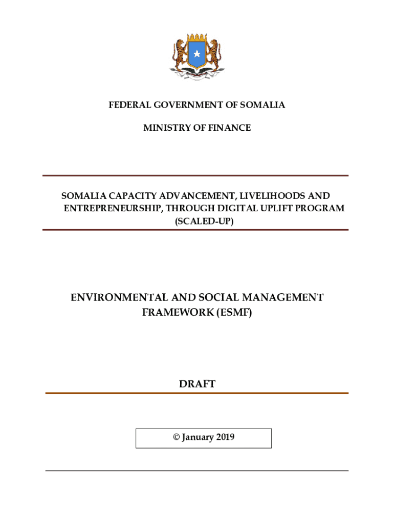 FEDERAL GOVERNMENT OF SOMALIA MINISTRY OF FINANCESOMALIA CAPACITY ADVANCEMENT, LIVELIHOODS AND ENTREPRENEURSHIP, THROUGH DIGITAL UPLIFT PROGRAM (SCALE DUP)ENVIRONMENTAL AND SOCIAL MANAGEMENT FRAMEWORK