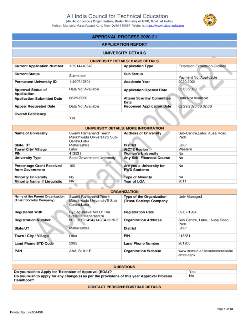 Get the free UNIVERSITY DETAILS - srtmun ac