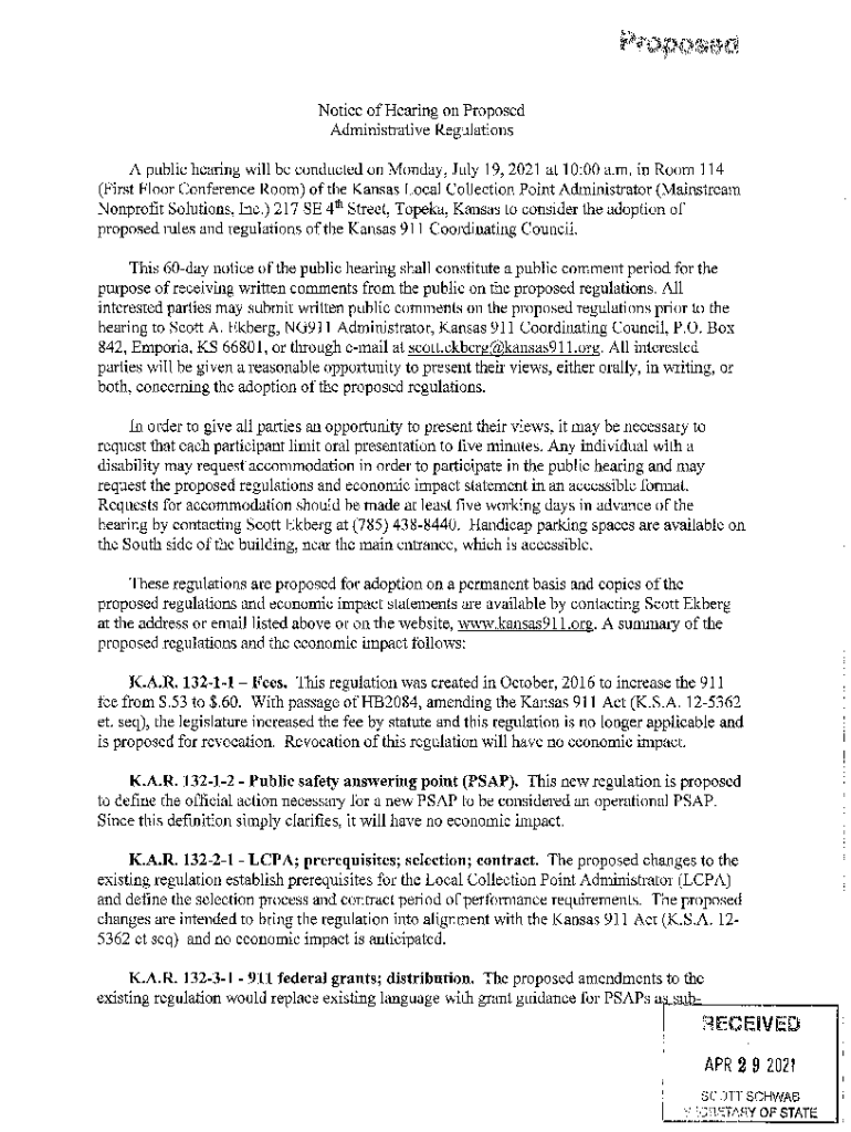 Get the free Notice of Administrative Regulation Filings - Secretary of State