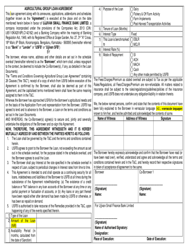 AGRICULTURAL GROUP LOAN AGREEMENT This loan agreement along with its appendixes, applications, addendums and schedules (together known as the Agreement) is executed at the place and on the date mentioned