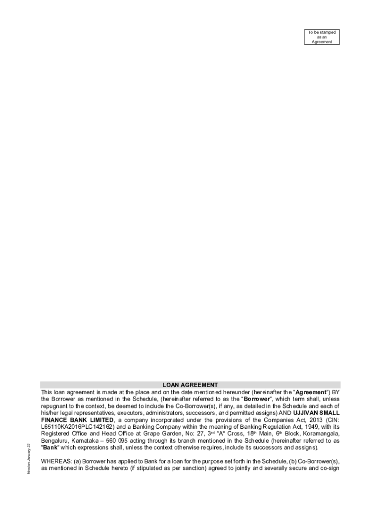 Version January 22To be stamped as an AgreementLOAN AGREEMENT This loan agreement is made at the place and on the date mentioned hereunder (hereinafter the Agreement) BY the Borrower as mentioned