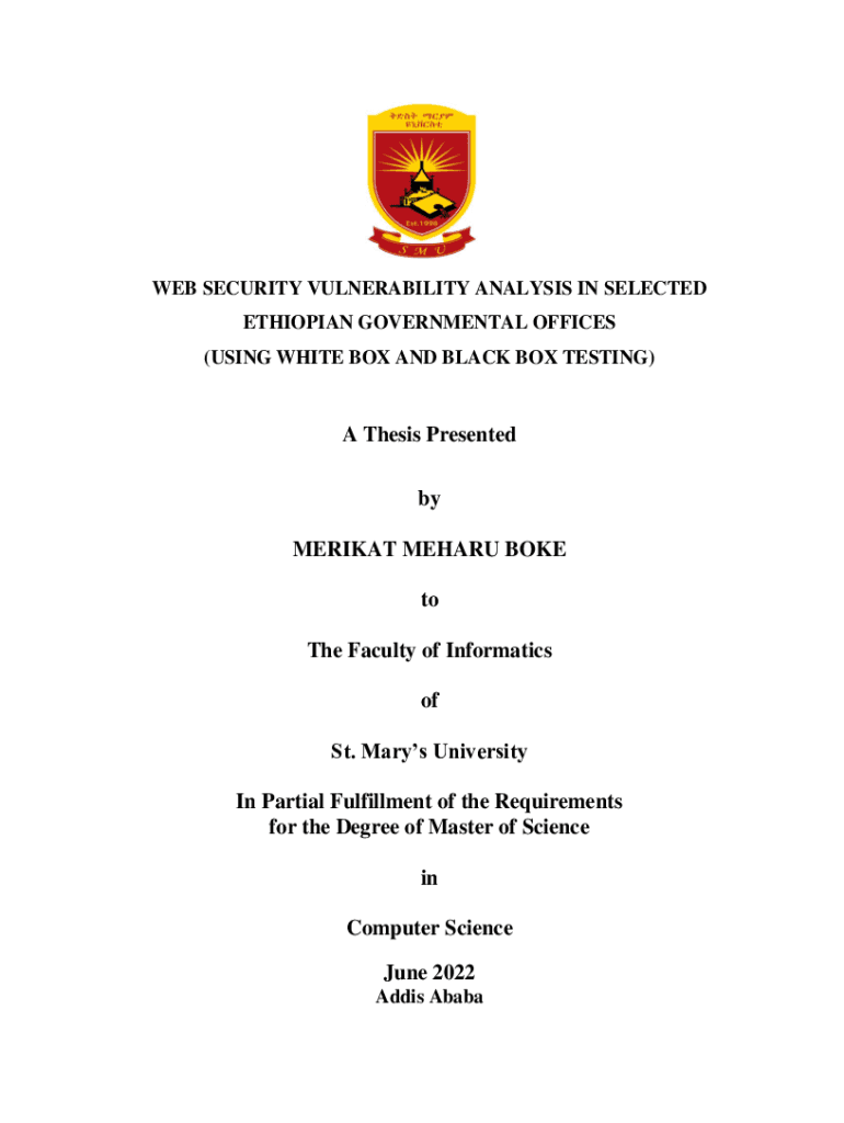 WEB SECURITY VULNERABILITY ANALYSIS IN SELECTED ETHIOPIAN GOVERNMENTAL OFFICES (USING WHITE BOX AND BLACK BOX TESTING)A Thesis Presented by MERIT MEH ARU BROKE to The Faculty of Informatics of St.