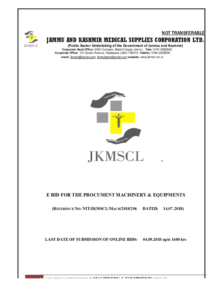 NOT TRANSFERABLEJAMMU AND KASHMIR MEDICAL SUPPLIES CORPORATION LTD. (Public Sector Undertaking of the Government of Jammy and Kashmir)Corporate Head Office: GMC Complex, Lakshmi Nagar Jammy : Tell: