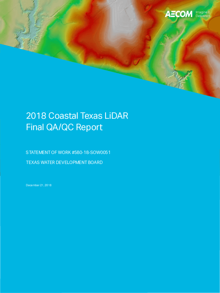 2018 Coastal Texas LiDAR Final QA/QC Report STATEMENT OF WORK #58018SOW0051 TEXAS WATER DEVELOPMENT BOARD December 21, 2018Prepared for: TEXAS WATER DEVELOPMENT BOARDPrepared by: AECOMCopyright 2018
