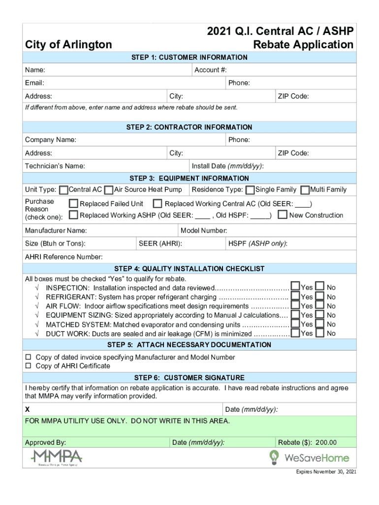 2021 Q.I. Central AC / ASH Rebate InstructionsCity of Arlington participating in the Save program, you can save energy and earn a rebate when you purchase a qualifying Quality Installed (Q.I.) central