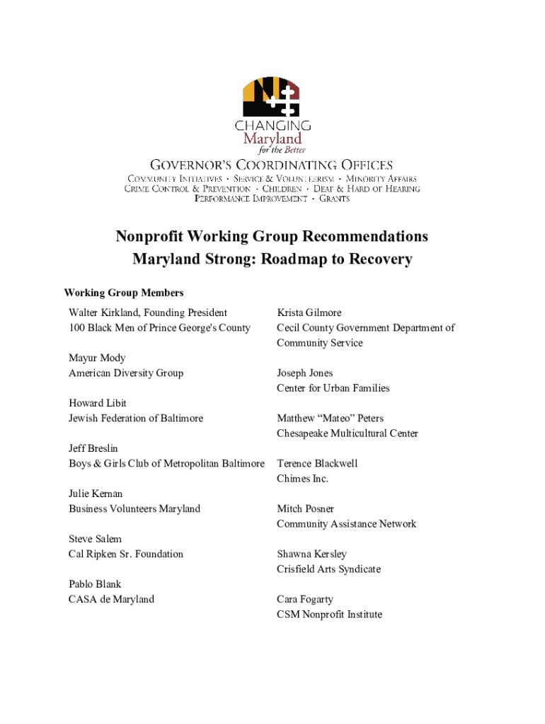 Get the free Nonprofit Working Group Recommendations Maryland Strong
