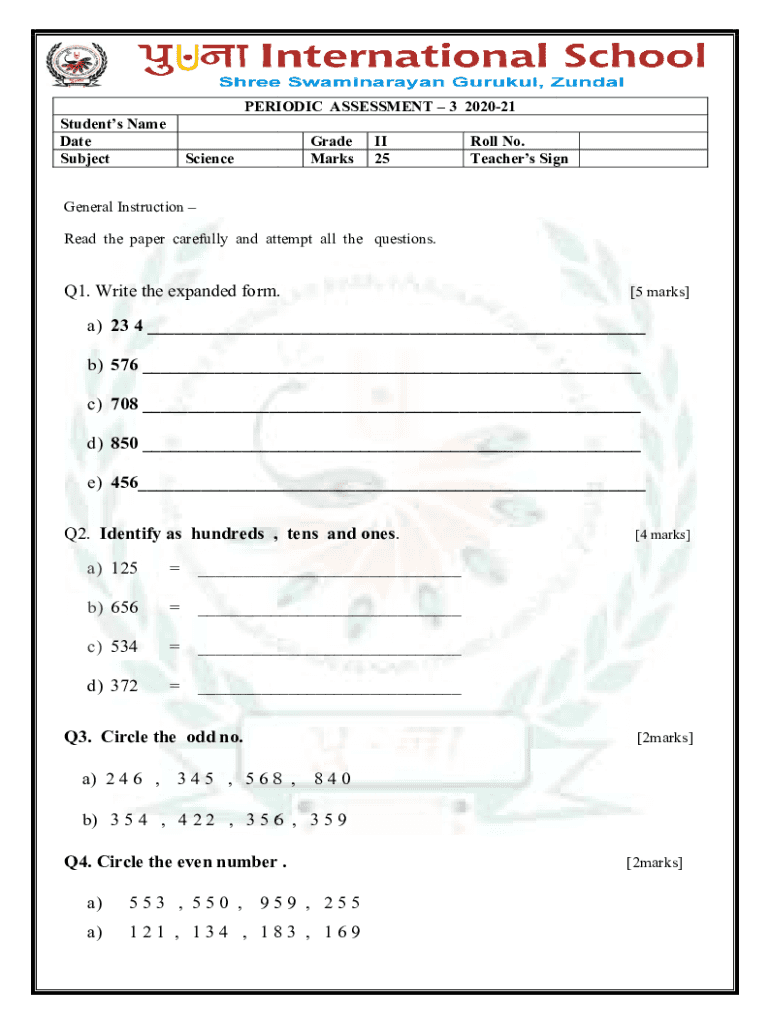 PERIODIC ASSESSMENT 3 202021 Students Name Date SubjectScienceGrade Marks 25Roll No. Teachers SignGeneral Instruction Read the paper carefully and attempt all the questions. Q1. Write rite the expanded