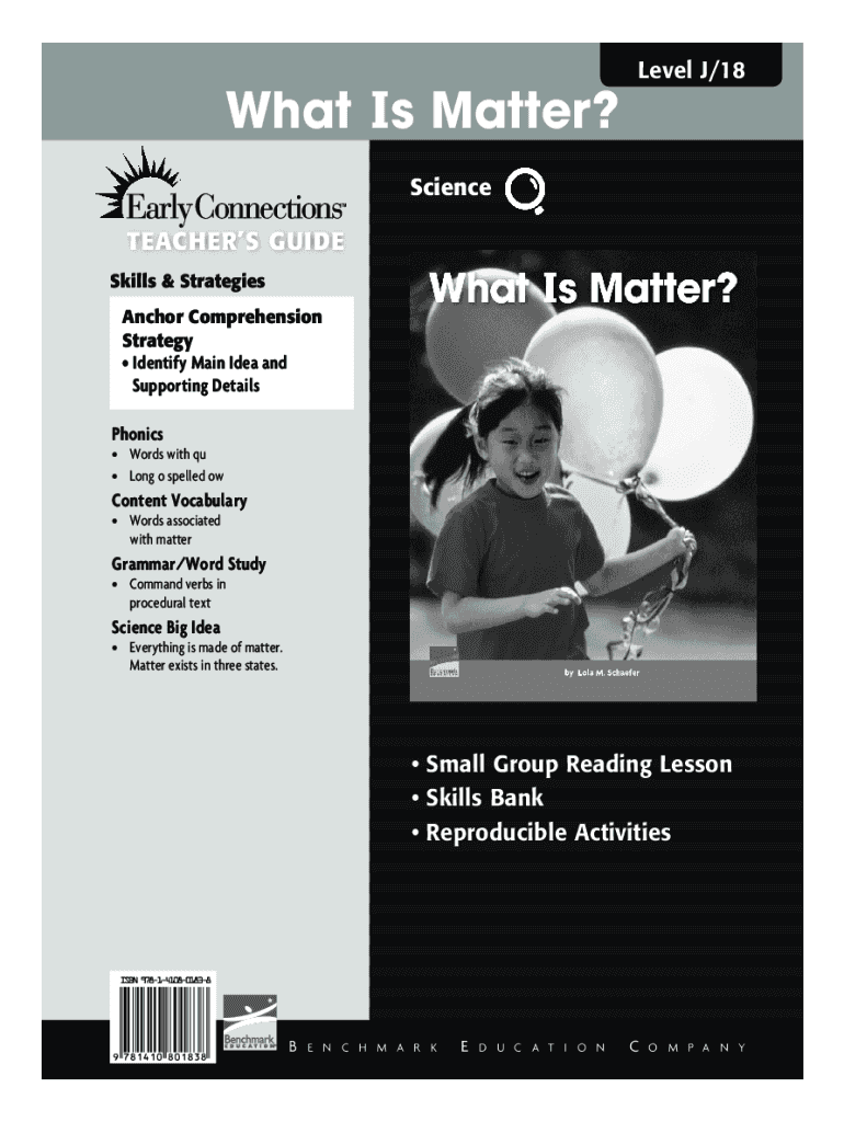What Is Matter? Level J/18ScienceTeachers Guide Skills & Strategies Anchor Comprehension Strategy Identify Main Idea and Supporting Details Phonics Words with EU Long o spelled content Vocabulary