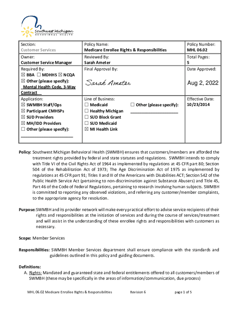 Section: Customer Services Owner: Customer Service Manager Required By: BBA MD HHS NCAA Other (please specify): _Mental Health Code, 3Way Contract__ Application: SAMBA Staff/Ops Participant Chips