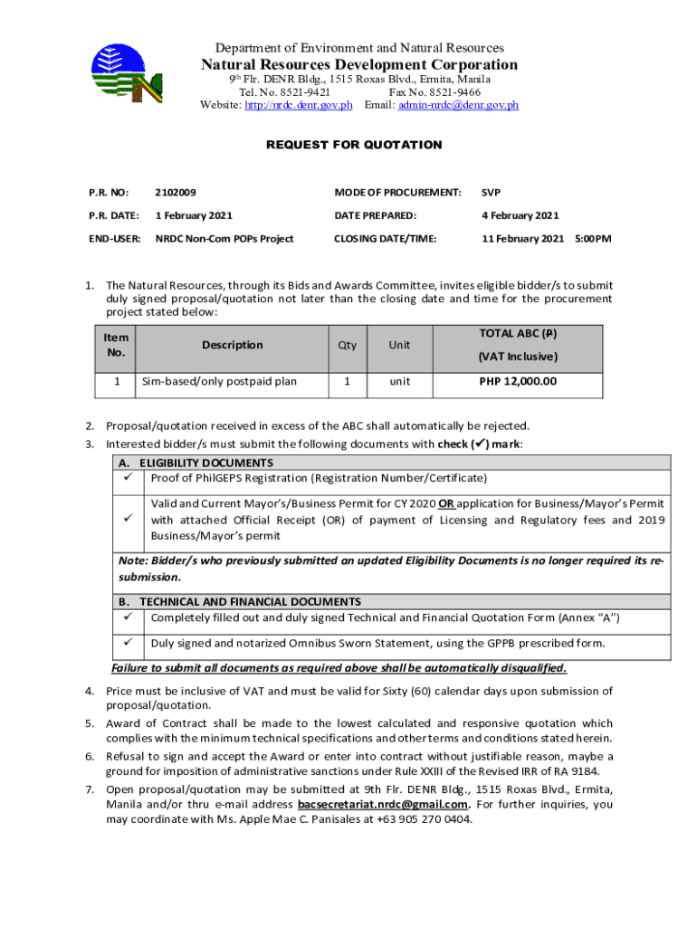 Get the free Natural Resources Development Corporation - DENR