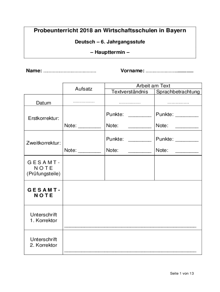 Probeunterricht 2018 a Wirtschaftsschulen in Bayern