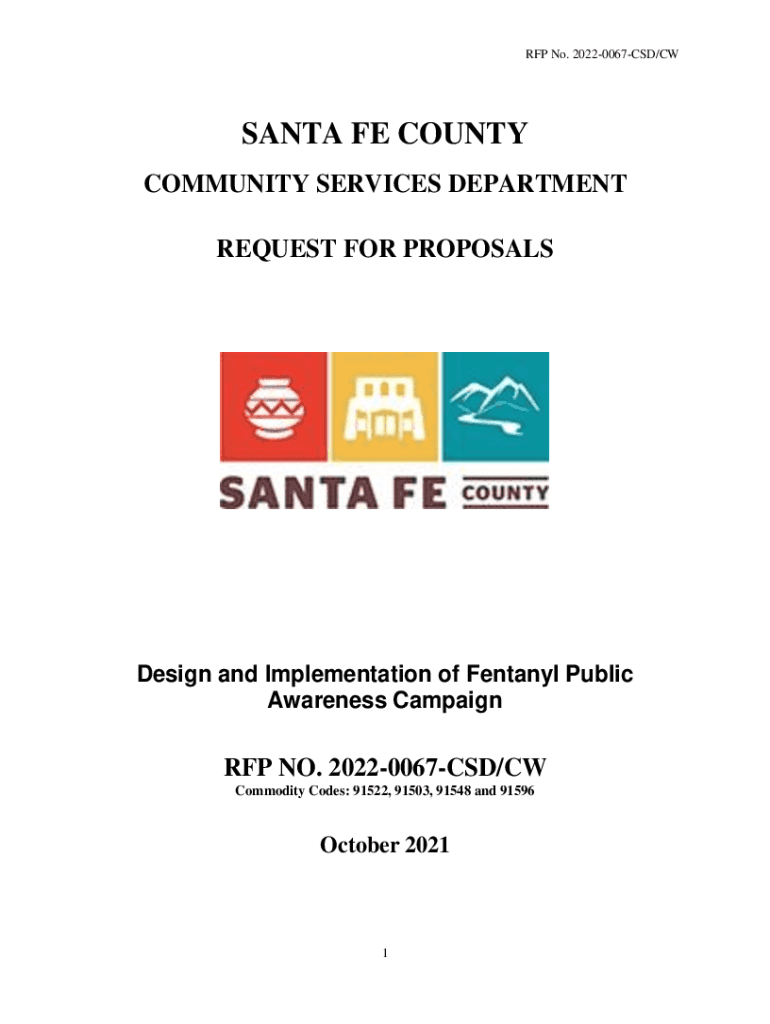RFP No. 20220067CSD/SANTA FE COUNTY COMMUNITY SERVICES DEPARTMENT REQUEST FOR PROPOSALSDesign and Implementation of Public Awareness Campaign RFP NO. 20220067CSD/CW Commodity Codes: 91522, 91503,