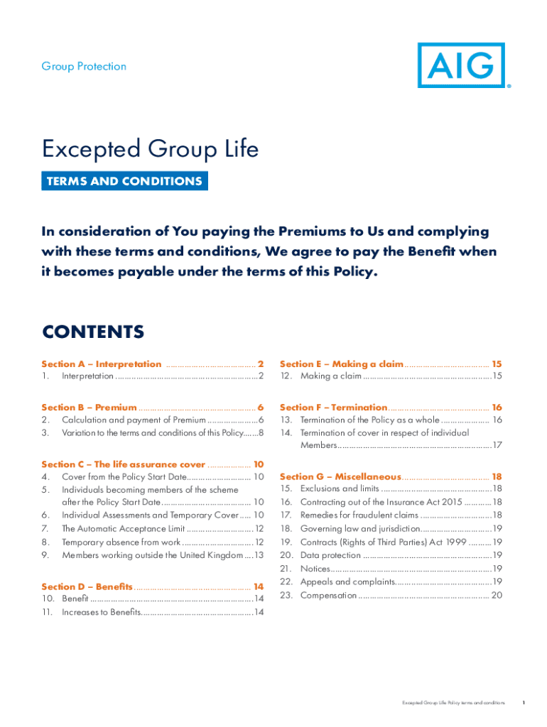 Group ProtectionExcepted Group Life TERMS AND CONDITIONS In consideration of You paying the Premiums to Us and complying with these terms and conditions, We agree to pay the Benefit when it becomes