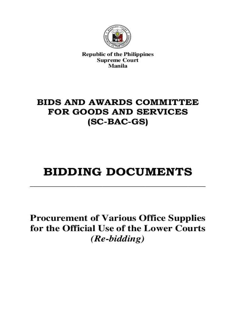 Republic of the Philippines Supreme Court Mainlands AND AWARDS COMMITTEE FOR GOODS AND SERVICES (SCRAGS)BIDDING DOCUMENTS ___Procurement of Various Office Supplies for the Official Use of the Lower