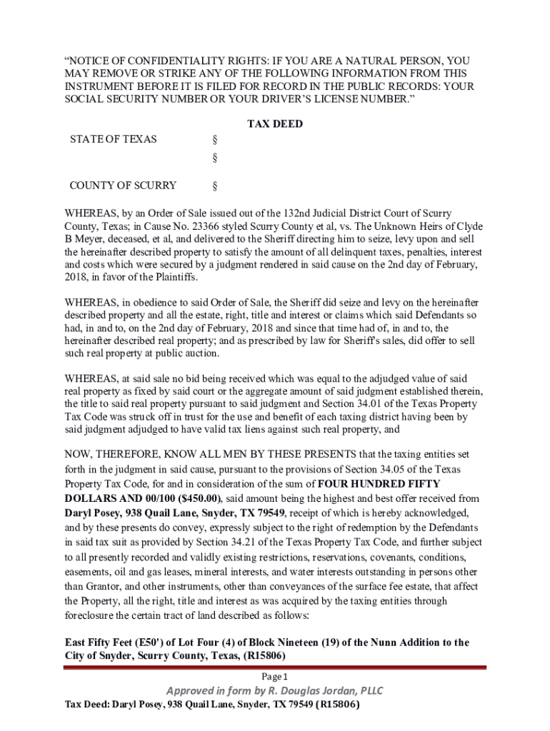 NOTICE OF CONFIDENTIALITY RIGHTS: IF YOU ARE A NATURAL PERSON, YOU MAY REMOVE OR STRIKE ANY OF THE FOLLOWING INFORMATION FROM THIS INSTRUMENT BEFORE IT IS FILED FOR RECORD IN THE PUBLIC RECORDS: YOUR