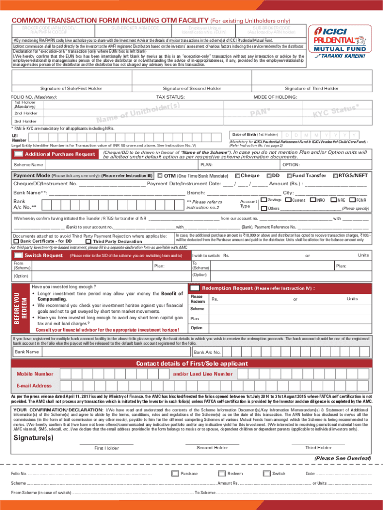 Common Application Form Select Equity SchemesSelect Fund of Funds Schemes
