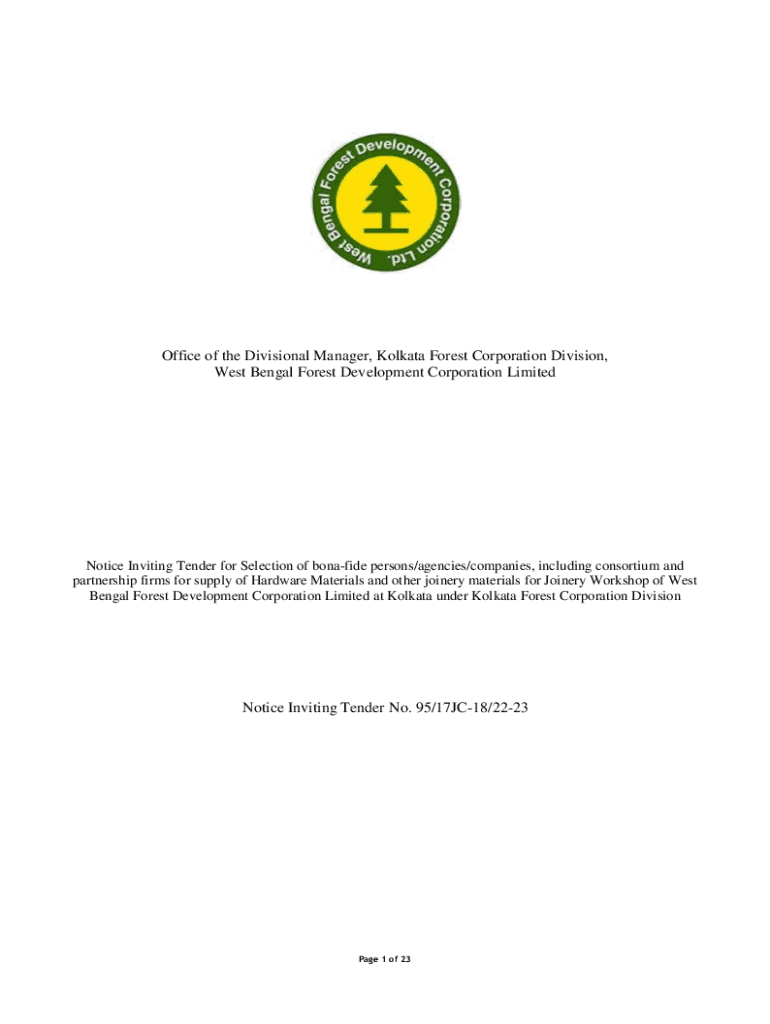 Office of the Divisional Manager, Kolkata Forest Corporation Division, West Bengal Forest Development Corporation LimitedNotice Inviting Tender for Selection of bona fide persons/agencies/companies,