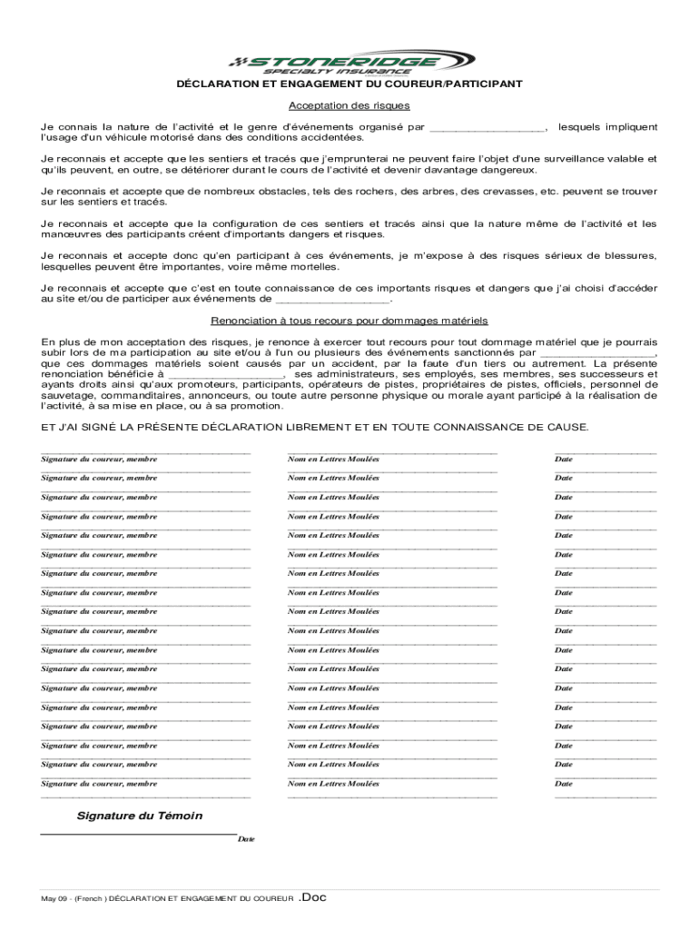 DECLARATION ET ENGAGEMENT DU COURIER/PARTICIPANT Acceptation DES risqué JE Connie la nature DE activity et LE genre tenements organic par ___, sequels implement usage dun vehicle motors days DES