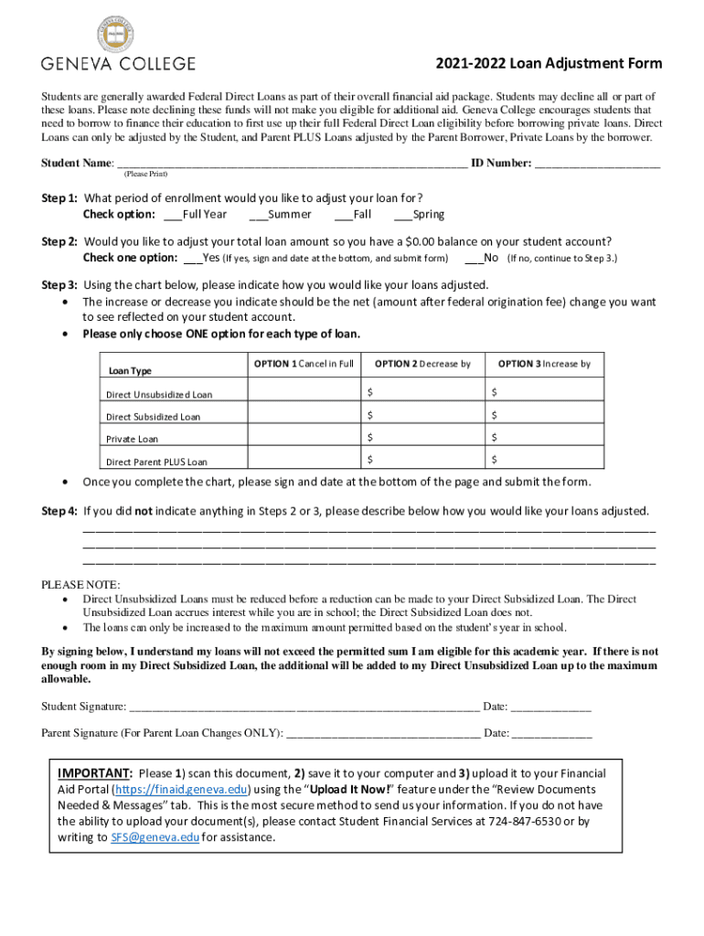 20212022 Loan Adjustment Form Students are generally awarded Federal Direct Loans as part of their overall financial aid package. Students may decline all or part of these loans. Please note declining