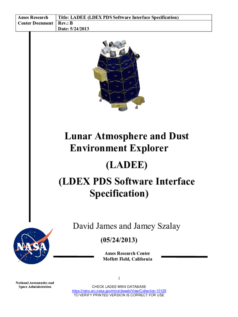 Ames Research Center DocumentTitle: LADEN (LDE PDS Software Interface Specification) Rev.: B Date: 5/24/2013Lunar Atmosphere and Dust Environment Explorer (LADEN) (LDE PDS Software Interface Specification)