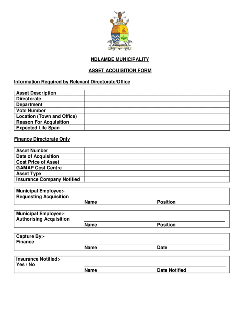 Obtain the necessary forms for ndlambe municipality asset acquisition.