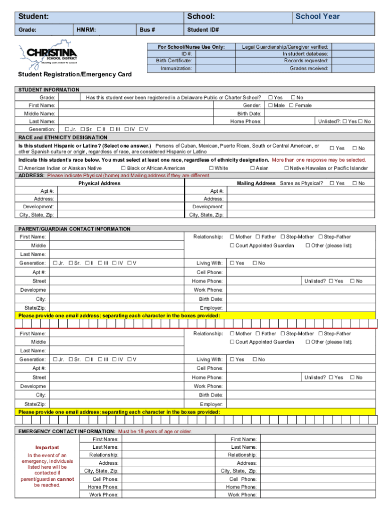 Student:School:Grade:HARM:Bus #School YearStudent ID# For School/Nurse Use Only: ID #: Birth Certificate:Student Registration/Emergency Paralegal Guardianship/Caregiver verified: In student database: