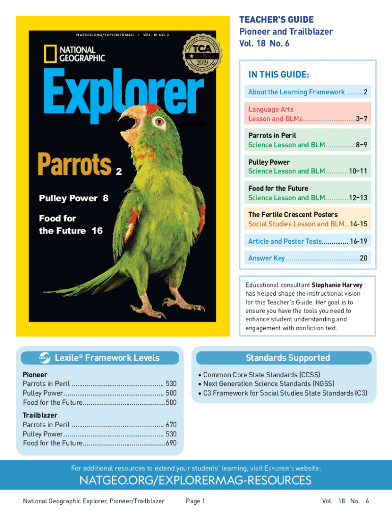 |VO L. 1 8 N O. 6 ECHOIC S C ESMADTEARACHWAPRIL 2019 N ATG E O. O KG/ E × P LO R E R M OPENING MAGNL2019 REFER THE CLASSROOMAAZIIN THIS GUIDE: About the Learning Framework 2 Language Arts Lesson
