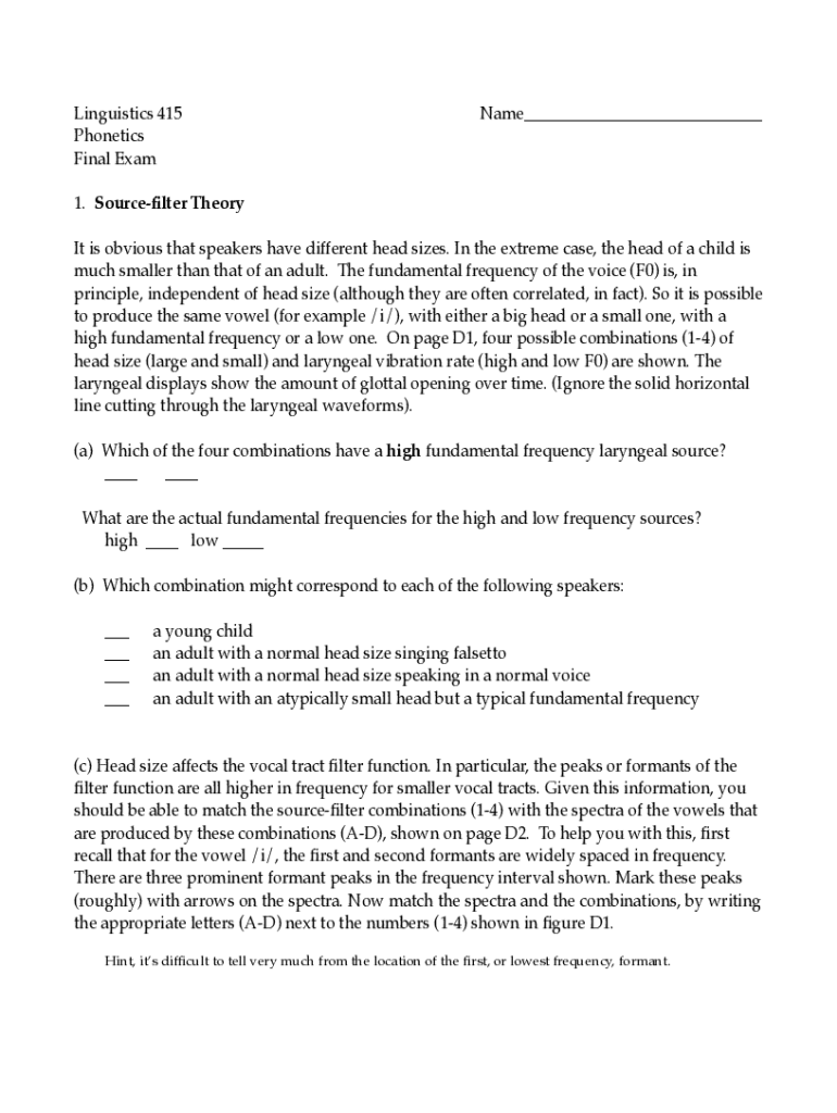 Name___1. Source later Theory It is obvious that speakers have different head sizes. In the extreme case, the head of a child is much smaller than that of an adult. The fundamental frequency of the