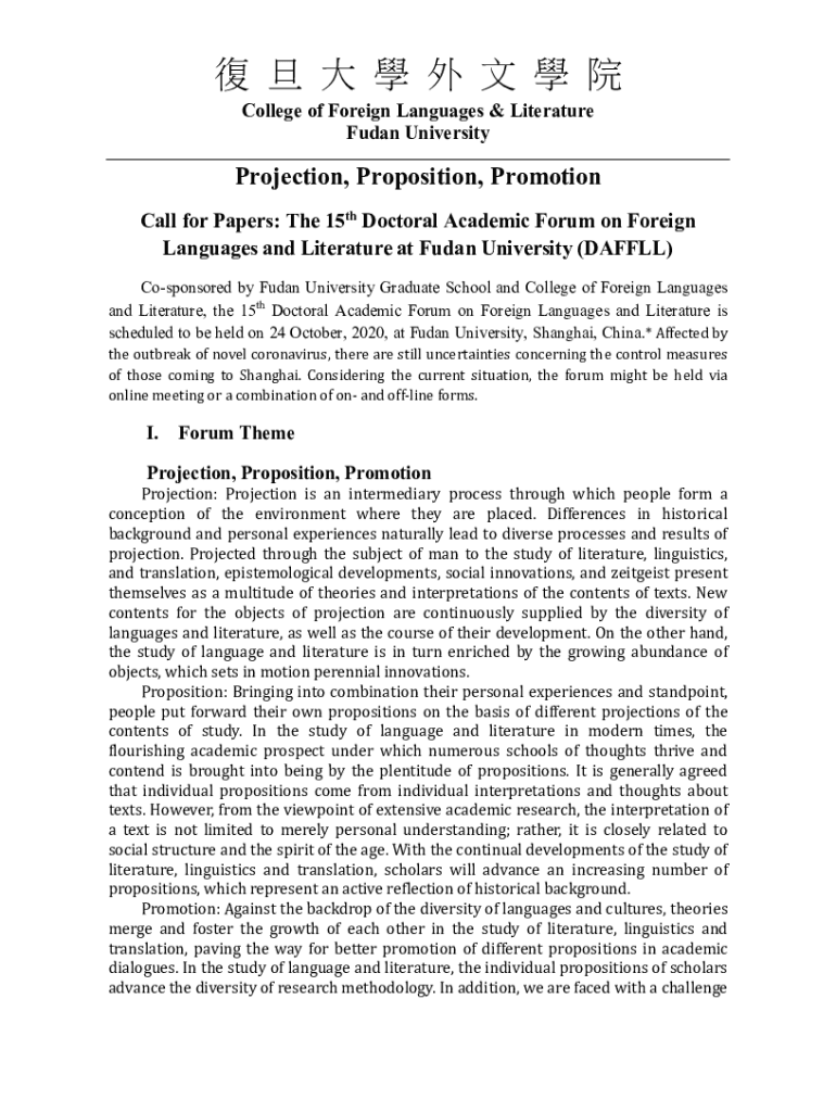 College of Foreign Languages & Literature Sudan UniversityProjection, Proposition, Promotion Call for Papers: The 15th Doctoral Academic Forum on Foreign Languages and Literature at Sudan University