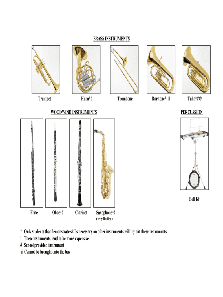 BRASS INSTRUMENTSTrumpetHorn*! TromboneBaritone*!WOODWIND INSTRUMENTSTuba*#@