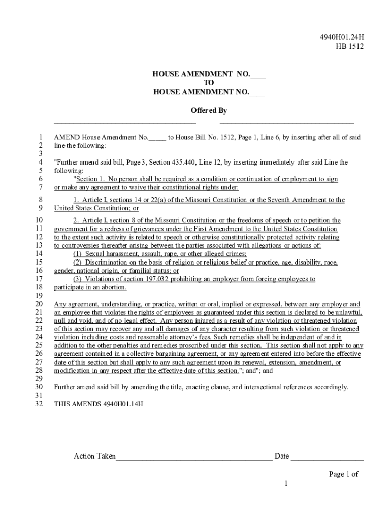 Get the free 4940H01.24H HB 1512 HOUSE AMENDMENT NO. - house mo