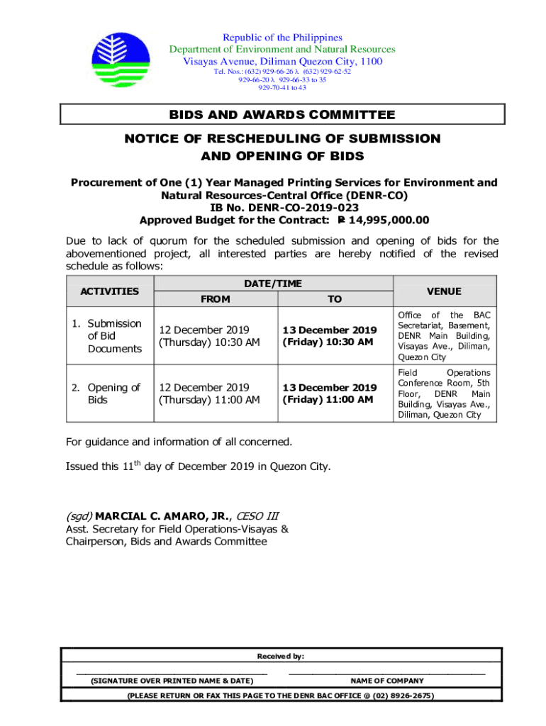 Republic of the Philippines Department of Environment and Natural Resources Visayans Avenue, Dalian Quezon City, 1100 Tells. Nos.: (632) 9296626 (632) 9296252 9296620 9296633 to 35 9297041 to 43BIDS