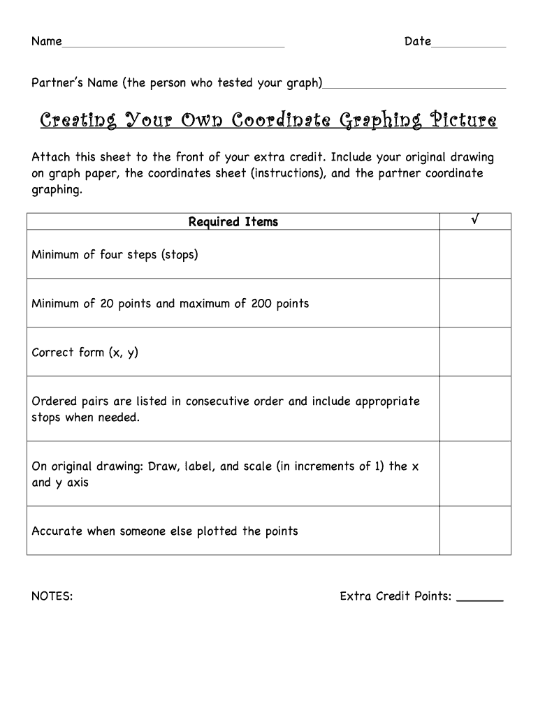 NameDatePartners Name (the person who tested your graph)Creating Your Own Coordinate Graphing Picture