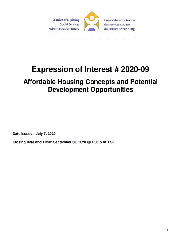 Expression of Interest # 202009 Affordable Housing Concepts and Potential Development OpportunitiesDate issued: July 7, 2020, Closing Date and Time: September 30, 2020 @ 1:00 p.m. EST1Definitions