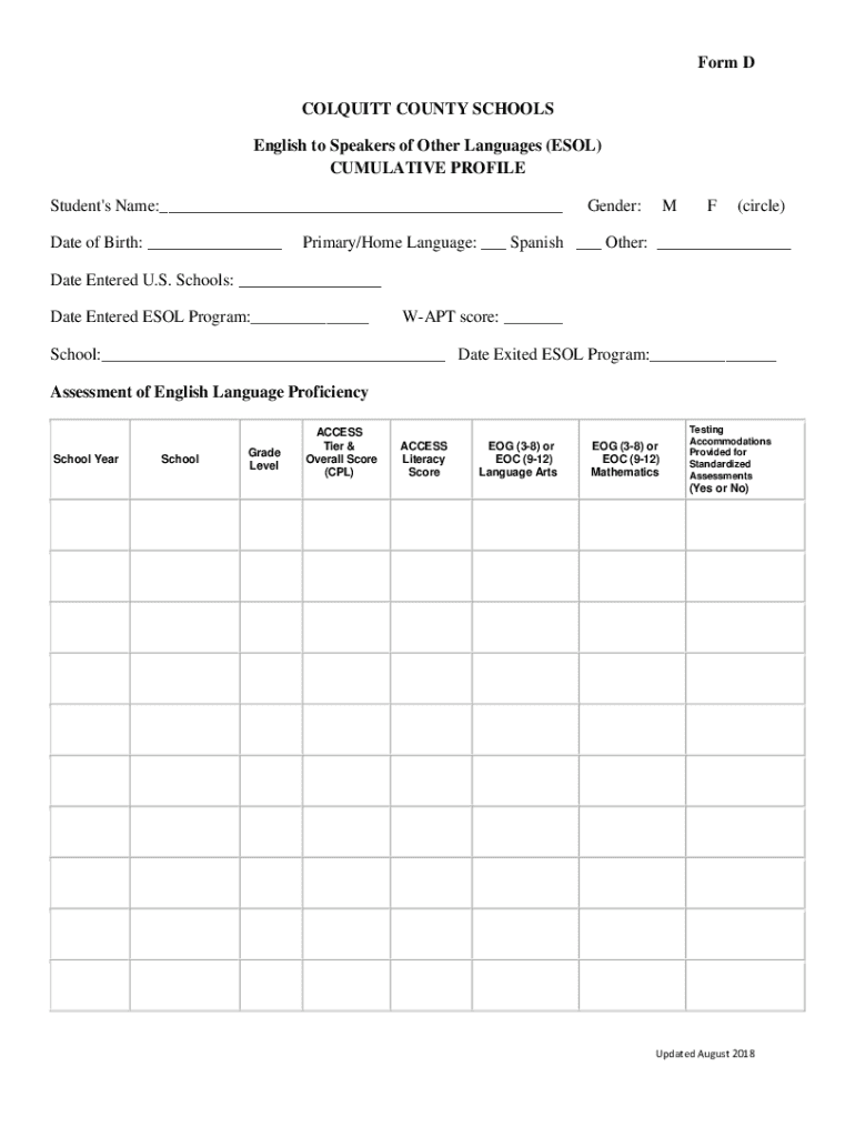 Obtain English to Speakers of Other Languages (ESOL) forms from the appropriate institution or organization.