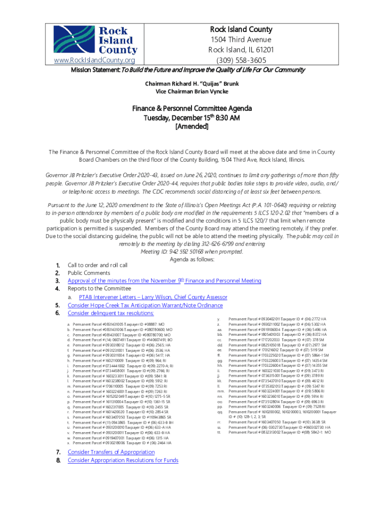 Rock Island County 1504 Third Avenue Rock Island, IL 61201 (309) 5583605www.RockIslandCounty.org Mission Statement: To Build the Future and Improve the Quality of Life For Our Community Chairman Richard