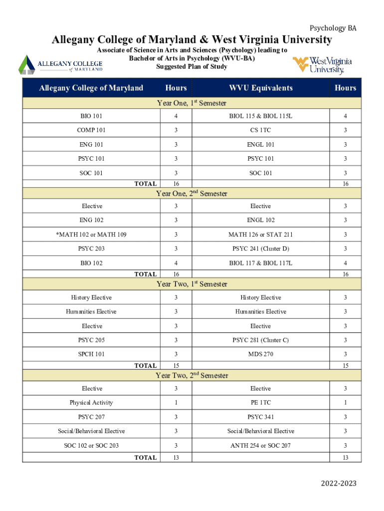 Get the free Bachelor of Arts in Psychology (WVU-BA) - registrar wvu