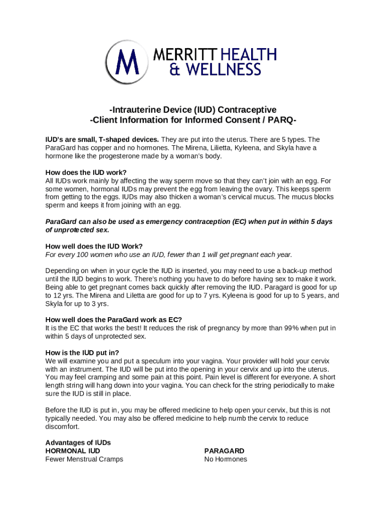 Instructions for the form PATIENT EDUCATION SERIES The Intrauterine Device (IUD)