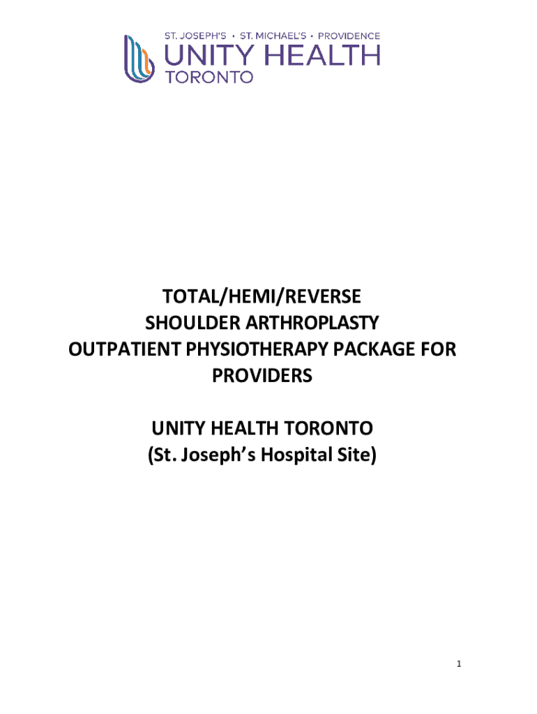 TOTAL/SEMI/REVERSE SHOULDER ARTHROPLASTY OUTPATIENT PHYSIOTHERAPY PACKAGE FOR PROVIDERS UNITY HEALTH TORONTO (St. Josephs Hospital Site)1INSTRUCTIONS TO PATIENTS: Please bring this booklet to your