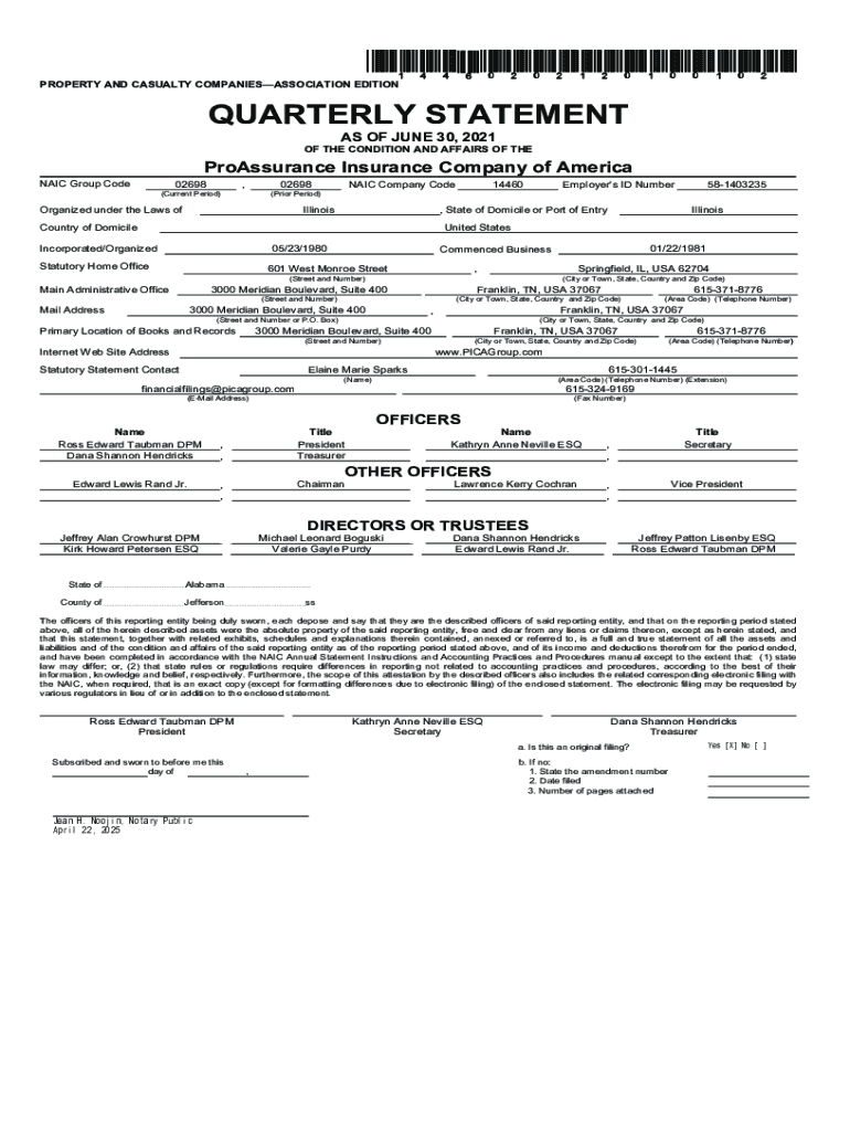 *14460202120100102* PROPERTY AND CASUALTY COMPANIESASSOCIATION EDITIONQUARTERLY STATEMENT AS OF JUNE 30, 2021, OF THE CONDITION AND AFFAIRS OF THEProAssurance Insurance Company of America NAIL Group