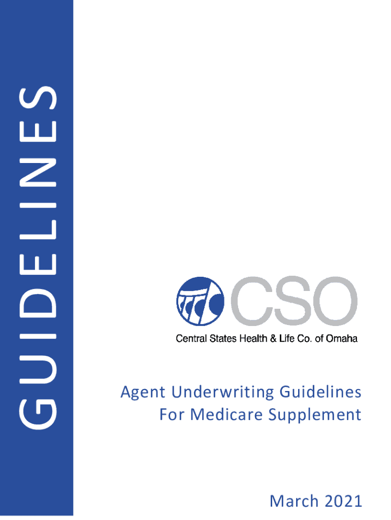 GUIDELINES0Agent Underwriting Guidelines For Medicare Supplement March 2021Contacts New Business CSO Medicare Supplement Administration P.O. Box 10844 Clearwater, FL 33757 8844Overnight Delivery Only
