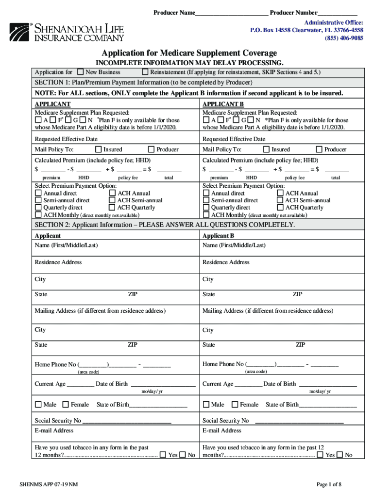 New Business Pack for Medicare Supplement Insurance Mexico NM 070119053119Shenandoah Life Insurance Company Improve processing time by verifying the following:Determine if the Applicant is Newly Eligible