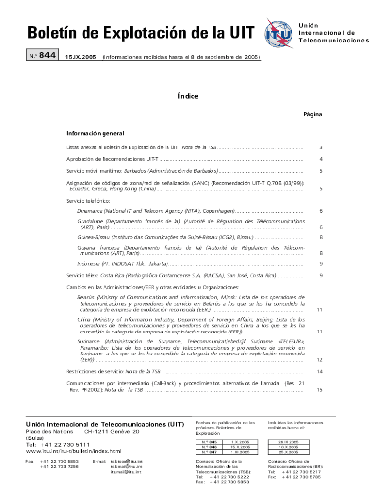Get the free Boletn de Explotacin de la UIT. Numro 844