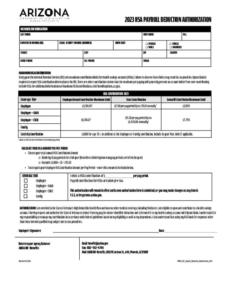 2023 HSA PAYROLL DEDUCTION AUTHORIZATION