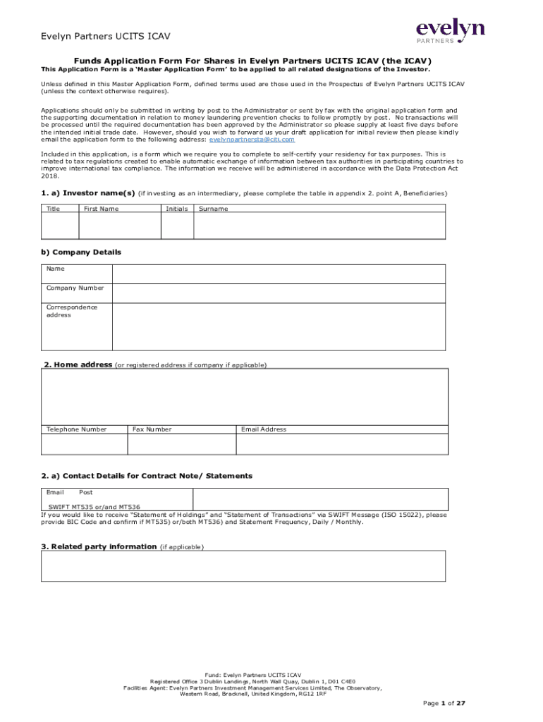 How to fill out evelyn partners ucits icav