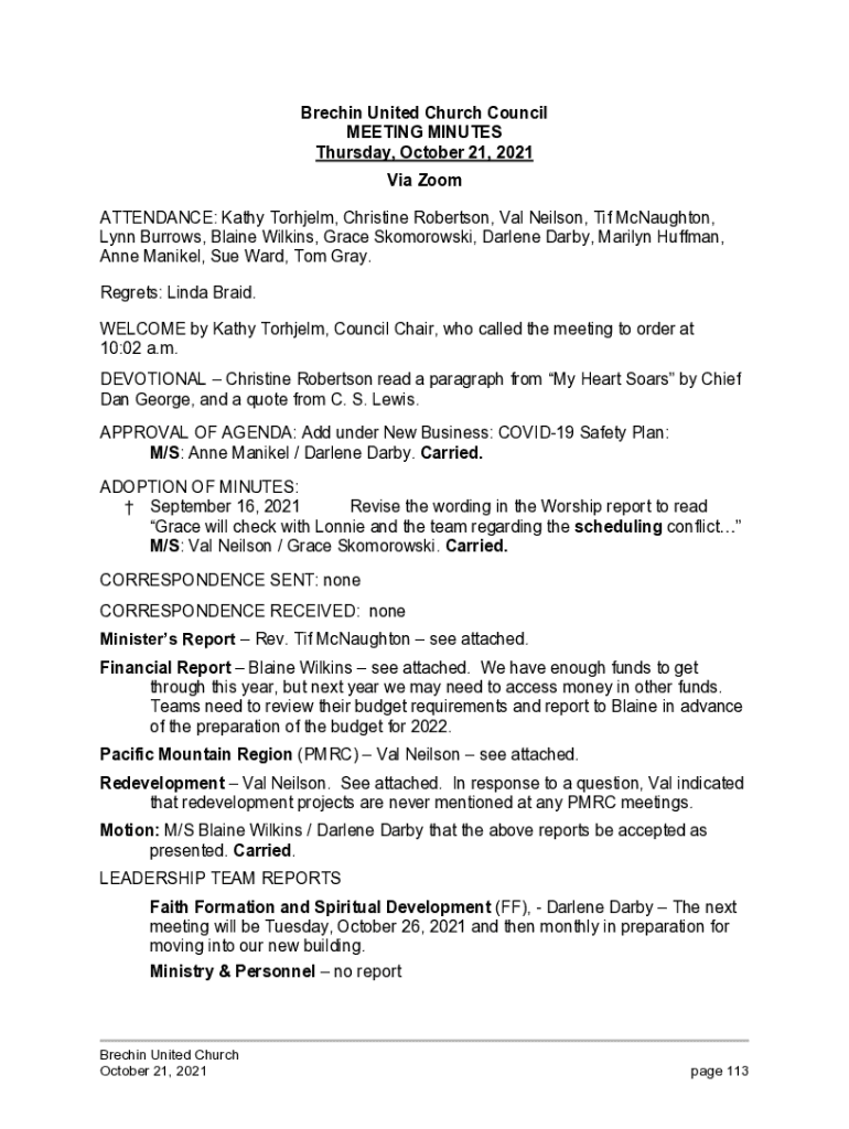 The members and leaders of the Brechin United Church are required to file the council's reports.
