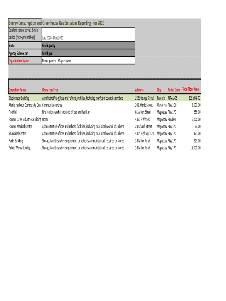Energy Consumption and Greenhouse Gas Emissions Reporting for 2020 Confirm consecutive 12mth period (other to other) Sector Agency Subsector Organization Name Jan/2020 Dec/2020 Municipality Municipal